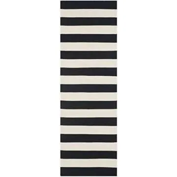 SAFAVIEH Montauk Collection Runner Rug - 2'3" x 7', Black & Ivory, Handmade Flat Weave Boho Farmhouse Cotton Stripe, Ideal for High Traffic Areas in Living Room, Bedroom (MTK712D)