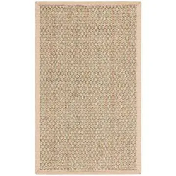 Show more Transform your home into a cozy haven with this exquisite area rug by SAFAVIEH, renowned for over a century in leading home furnishings. This machine-woven rug showcases a stylish basketweave design that not only captivates the eye but also promises durability and strength for countless years of enjoyment. Crafted from premium natural jute fibers and enhanced with a chic cotton border, this rug is a perfect blend of aesthetics and quality that speaks to any home décor.
