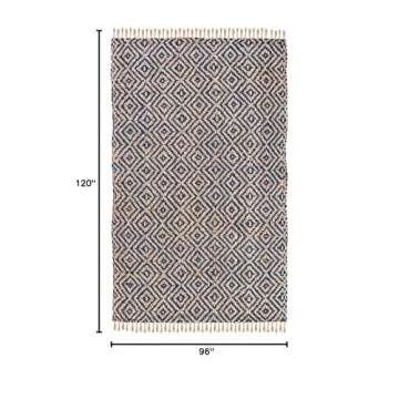 SAFAVIEH Natural Fiber Collection Area Rug - 8' x 10', Tropical Blue & Natural, Handmade Boho Diamond Tassel Jute, Ideal for High Traffic Areas in Living Room, Bedroom (NF266D)