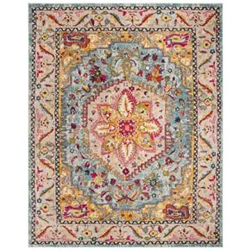 SAFAVIEH Phoenix Collection Area Rug - 8' x 10', Turquoise & Beige, Boho Chic Oriental Medallion Design, Non-Shedding & Easy Care, Ideal for High Traffic Areas in Living Room, Bedroom (PHX153K)