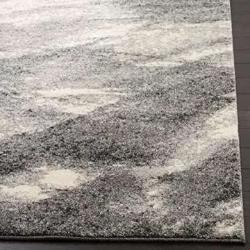 Show more Transform your living space with the SAFAVIEH Retro Collection Accent Rug, measuring a perfect 4' x 6'. This stunning rug, designed in a modern abstract style with a chic combination of grey and ivory, adds a touch of contemporary flair to any room. Made from enhanced synthetic durable fibers, it boasts an impressive stain-resistant feature and a virtually non-shedding 0.8-inch thick pile. This ensures that it is not only beautiful but also practical for families and homes with pets, making it a must-have addition to your interior decor.
