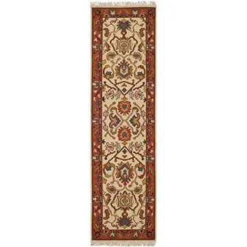 Show moreIntroducing the SAFAVIEH Sumak Collection 2'6" x 8' Ivory / Rust SK115B Handmade Traditional Premium Wool Runner Rug, an exquisite addition to any home. Crafted with meticulous attention to detail, this stunning rug showcases a beautiful blend of elegant ivory and warm rust tones, giving it a timeless appeal that complements various decor styles. Each rug is handmade and hand-woven, leveraging over a century of expertise from Safavieh, a brand renowned for its high-quality craftsmanship and unmatched style. The premium wool used in its construction offers a plush, soft texture underfoot, while the traditional designs exude class and sophistication.