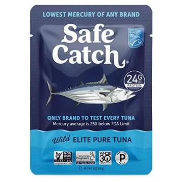 Safe Catch Elite Tuna Wild-Caught Lowest Mercury Tuna Fish Pouch Gluten-Free Keto Food Non-GMO Kosher Paleo-Friendly High Protein Snack, No Water Oil Tuna, Pack of 12 Tuna Pouches 3oz