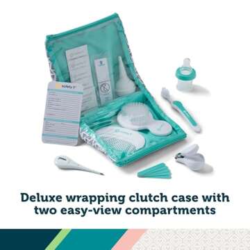 Show moreIntroducing the ultimate baby care essential, the Deluxe Baby Care Gift Set, a perfect package designed for the modern parent! This beautifully curated set includes everything you need to ensure your little one is comfortable and well-cared for. The Deluxe wrapping clutch case features two easy-view compartments, making it a breeze to organize and access baby items on the go. The easy-grip brush with its soft bristles ensures gentle grooming, while the gentle care comb offers a comfort handle for easy styling without any fuss.