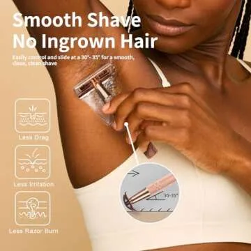 Show more Introducing the revolutionary Safety Razor for Women, designed to elevate your shaving experience to new heights! This single blade safety razor not only offers a smooth and comfortable shave, but also emphasizes environmental responsibility by minimizing plastic waste. Crafted with precision, this elegant reusable metal razor features double edge safety blades, meaning you can achieve the closest shave while ensuring long-lasting sharpness and durability. Imagine saying goodbye to irritation and razor bumps, as this safety razor glides effortlessly over your skin at the perfect angle of 30-35 degrees.