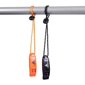 Each whistle comes with a clip and lanyard for easy attachment to backpacks, life jackets, belts, or any gear.