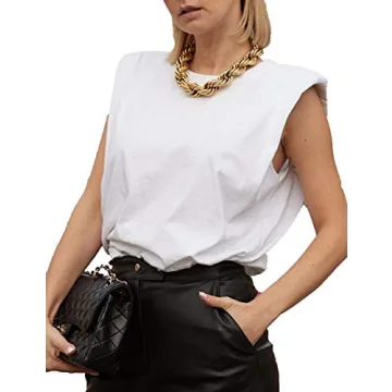 SAFRISIOR Women’s Loose Solid Shoulder Pads Sleeveless Tank Top for Everyday Style