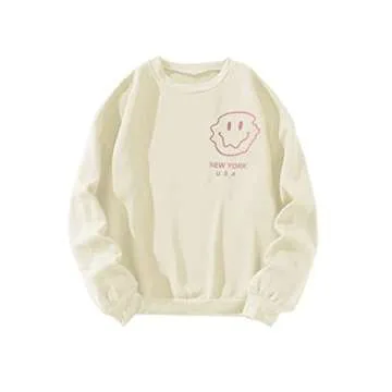 SAFRISIOR Women Oversized Fleece New York Letter Print Graphic Sweatshirt Long Sleeve Crewneck Pullover Jacket (Small, Apricot)