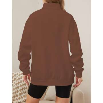 SAFRISIOR Women’s Oversized Half Zip Sweatshirt Drop Shoulder Long Sleeves Collar Quarter 1/4 Zipper Pullover Brown