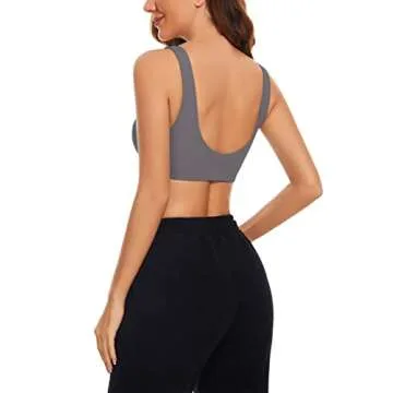 SAFRISIOR Women's Solid Comfort Wireless Scoop Neck Sleeveless Backless Crop Tank Cami Yoga Sleep Sports Bra, Dark Grey, Medium