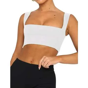 Show moreUnleash your inner workout warrior with the SAFRISIOR Women's Square Neck Sleeveless Sports Bra Crop Top. Designed for the modern, active woman, this sexy backless and skinny solid cropped tank is perfect for yoga, gym sessions, or casual outings. Its stylish silhouette and flattering square neck offer both aesthetic appeal and functionality, ensuring you feel confident and comfortable wherever you go. Made from high-quality, stretchy fabric, the crop top molds to your body while providing ample support for any activity.