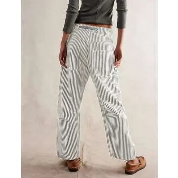 Equipped with a stylish contrast drawstring detail, these pants also boast two large front pockets, making them both fashionable and practical. The slouchy striped print resonates with the Y2K fashion movement, perfect for teen girls and a quintessential piece for the 2024 fashion scene. These wide-leg trousers are versatile enough to be paired with cami tops, tank tops, shirts, and even jackets, making them an essential companion for any outfit.