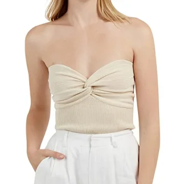 The SAFRISIOR Women's Twist Front Knit Tube Top is available in various sizes; consult the size chart on the product page for your best fit.