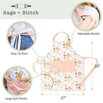 Show moreIntroducing the Sage and Stitch Adjustable Neck Cooking Apron, a perfect blend of style and functionality for any culinary enthusiast! Measuring 27 inches in width and 33 inches in length, this apron is tailored to offer coverage that caters to diverse body shapes, making it an ideal choice for those who love to cook or bake.