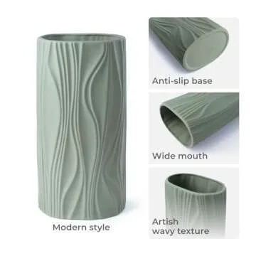 The sage green hue of this vase is perfect for any room, making it a versatile accent piece that complements a variety of interior styles, from contemporary to rustic. Measuring at an ideal size, it boasts a beautiful design without being overwhelming, seamlessly blending with your existing decor. The wide mouth opening is designed for creative arrangements, allowing you to craft breathtaking floral displays in any setting, whether gracing your dining table or as a standout piece on your mantel.