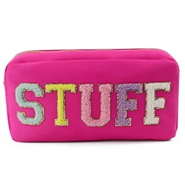Show moreDiscover the perfect blend of style and functionality with the Sage Nation Chenille Letter Nylon Makeup Bag. Designed for those who appreciate elegance and practicality, this makeup bag is a must-have accessory for anyone on the go. Its high-quality, water-resistant nylon material ensures your essentials stay safe from splashes, while the beautifully crafted pastel chenille glitter letters add a touch of sophistication and trendiness to your routine. Whether you're organizing your daily essentials, heading to school, or traveling, this bag is your go-to for combining style with functionality.