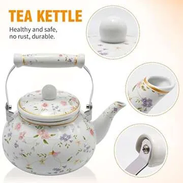 Saihisday Enamel Teakettle Floral Teapot for Stovetop, 2.5L Large Green Floral Tea Kettle with Ceramic Handel Turkish Style(Green Rose)