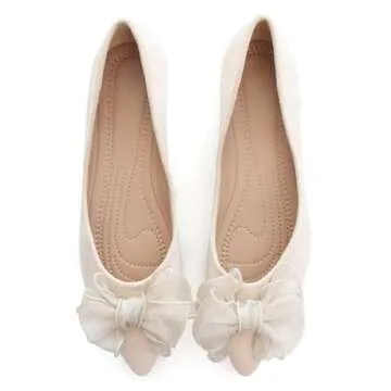 SAILING LU Bow-Knot Ballet Flats Womens Pointy Toe Flat Shoes Suede Dress Shoes Wear to Work Slip On Moccasins Apricot Size 9