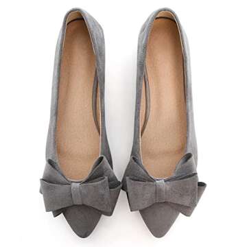 SAILING LU Bow-Knot Ballet Flats Womens Pointy Toe Flat Shoes Suede Dress Shoes Wear to Work Slip On Moccasins Grey Size 9