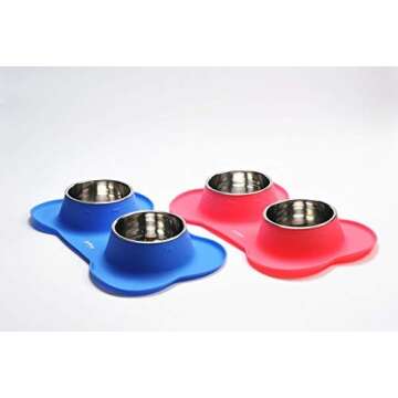 Sailing. Silicone + Stainless Steel Spill Proof Dog Bowl, Pets Cats Feeder Bowls, Food Water Feeding Travel Bowl. BPA Free. (Red)