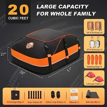 Sailnovo Car Rooftop Cargo Carrier Roof Bag, 20 Cubic Feet Waterproof Car Rooftop Cargo Carrier Bag Fit Car with Without Roof Rack - Car Top Carrier with Tie-Down Strap, Safety Hook