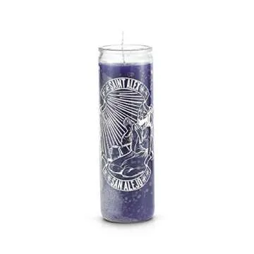 The Saint Alex candle is available in traditional colors associated with protection and healing.