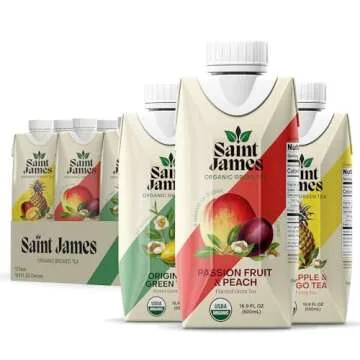 Saint James Iced Tea - Organic Green Tea - Non GMO, Gluten Free, Low Calorie & Low Sugar - Variety Green Tea Flavors, 12 Pack (16.9 fl oz each)
