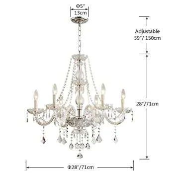 Saint Mossi 6 Light Chandelier Modern K9 Crystal Chandelier Lighting, Clear Crystal Ceiling Light Fixture Pendant Lamp for Dining Room Bathroom Bedroom Livingroom