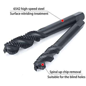 Show moreIntroducing the Saipe 7pcs Nitriding Coated Spiral Screw Thread Tap Set, crafted from high-speed steel 6542, ensuring durability and precision with each tap. This comprehensive set includes taps in various sizes: M3, M4, M5, M6, M8, M10, and M12, making it an essential tool for both professionals and DIY enthusiasts. The innovative nitriding coating not only enhances hardness but also improves wear resistance, allowing for superior performance and longevity. Each tap features a spiral design, facilitating efficient chip removal and reducing friction, which translates to smoother, more effective threading. Whether you are working on repairs, construction, or custom projects, this set is designed to deliver impeccable results every time.
