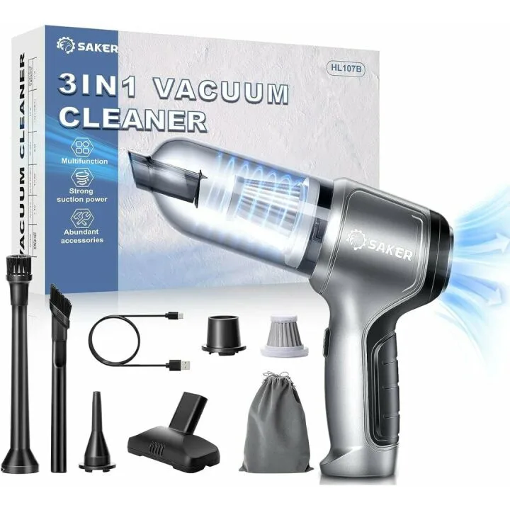 Show moreIntroducing the Saker Car Vacuum Portable Cordless 3 in 1 Handheld Vacuum Cleaner! This versatile cleaning tool is designed to meet all your car, office, and home cleaning needs. With a powerful suction capacity of 12000PA and a brushless motor, it ensures effective and efficient cleaning in a compact and portable form. This vacuum is powered by a Type-C charger, enabling quick and easy recharging. Not only does it function as a vacuum, but it also doubles as a blower, making it a multifunctional cleaning device for various tasks. Its lightweight design and assortment of attachments allow you to reach tight spaces and hard-to-reach areas, ensuring a thorough clean every time.