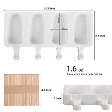 Sakolla 3 Pack Large Popsicle Molds 4 Cavities Cake Pop Silicone Molds Oval Ice Cream Cakesicle Molds for Chocolate Baking with 100 Wooden Sticks