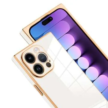 SAKUULO Case for iPhone 15 Pro Cute Plating Gold Case for Women Girls Soft TPU Shockproof Raised Full Camera Protection Electroplate Bumper Cover for iPhone 15 Pro 6.1"-White