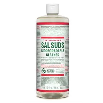 Show moreIntroducing the Sal Suds Concentrate by Dr. Bronner's: a revolutionary cleaning solution that will transform your approach to household chores. This isn’t just any cleaner; it's a sustainable powerhouse made from a balanced formulation of plant-based surfactants. Infused with natural spruce and fir-needle oils, this biodegradable cleaner packs a formidable punch while remaining gentle on your skin. Whether you're tackling tough grime on hard surfaces or cleaning delicate items, Sal Suds rises to the occasion with efficiency and care.