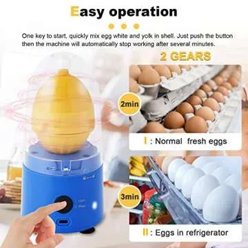 This electric egg scrambler operates easily at the push of a button, making it suitable for individuals of all ages. There's no need for strenuous manual mixing any longer; simply set the machine in motion, and it will spin in two directions before stopping at the designated time. Plus, with a stability-enhancing design that features rubber feet, you can trust this gadget to stay in place on your countertop, preventing any accidental spills or messes.
