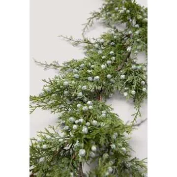 Show moreBring the lush beauty of the Pacific Northwest into your home with our Deluxe Artificial Oregon Juniper Berry Garland. Measuring an impressive 48 inches in length, this captivating garland is intricately crafted to capture the essence of real Oregon Juniper. Its vibrant green foliage is accented with stunning red berries, providing a festive touch that brightens up any space. With this garland, you can effortlessly embellish your home for the holidays or year-round decor without worrying about wilting or maintenance. It's perfect for draping over mantels, decorating banisters, or using as a centerpiece in your dining room.