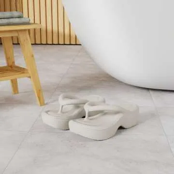 SALIGNA Women's Platform Flip Flop with Arch Support Casual Comfortable Wedge Flip-Flops Summer Beach Sandals Thong Slippers(Beige,8