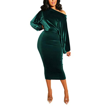 Show more Unveil your elegance with the Salimdy Women's One Off Shoulder Midi Dress, a perfectly tailored gown that combines luxurious velvet with stunning design to create a truly captivating outfit. This sexily designed bodycon dress not only accentuates your curves but also provides you with the comfort you deserve. Made from a blend of cotton, polyester, and spandex, this dress offers breathability and a soft feel against your skin, making it ideal for various occasions, from dawn till dusk.