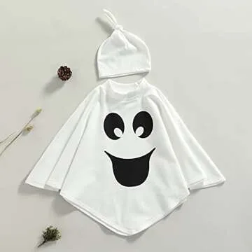 Show moreUnleash the magic of Halloween with the Saliuentm Toddler Kids Baby Halloween Costume, a whimsical and delightful ghost cloak designed for the little ones in your life! Crafted from a premium cotton blend, this costume is not just about style; it prioritizes comfort with its soft, skin-friendly fabric that's gentle on young skin. Parents can rest easy knowing that this outfit is breathable and sweat-absorbing, perfect for little trick-or-treaters on the move. Featuring a charming ghost print design with tassel trims, this cape brings a playful touch to any Halloween celebration.