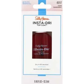 Show more Revolutionize your nail care routine with the Sally Hansen Insta-Dri Clear Top Coat, a game-changer in nail polish technology. This remarkable product makes nail application a breeze, offering an unrivaled drying time of just 30 seconds. Inventively designed with a perfectionist brush, the top coat contours to your nails, ensuring smooth and precise application every time. No longer will you worry about smudging or ruining your hard work; this top coat guarantees a flawless finish with brilliant shine.