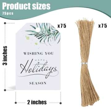 SallyFashion 75PCS Gift Tags, Kraft Paper Tags with String Happy Holidays Gift Tags for Wedding Birthdays Party Gift Baby Shower Bridal Shower