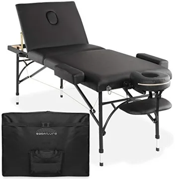 Show more Introducing the Saloniture Professional Portable Lightweight Tri-Fold Massage Table, the ultimate solution for both professional massage therapists and at-home users seeking superior comfort and convenience. This massage table combines a sleek, modern aesthetic with functionality, making it an excellent choice for anyone offering massage services or indulging in self-care. Designed with precision, it accommodates a diverse range of techniques, ensuring optimal support and luxury for every session.