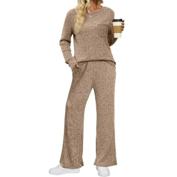 Show moreWelcome to the epitome of comfort and style with the Fashion Design 2024 Cozy Sweater Sets from Saloogoe. This stunning ensemble features a thoughtfully designed combination of a cozy crewneck long sleeve pullover top and high-waist wide-leg pants that come complete with a convenient drawstring. Perfect for relaxing at home or stepping out for a casual errand, this loungewear set makes comfort look effortlessly chic. The soft, ribbed fabric is gentle on the skin, allowing you to move freely and confidently throughout your day. Crafted from a high-quality blend of 25% Rayon, 70% Polyester, and 5% Spandex, you can expect both durability and coziness from this set, making it an essential addition to your wardrobe.