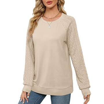 Show moreIntroducing the Saloogoe Women's Sweatshirts Crewneck Cable Knit Sweaters, the ultimate cozy companion for your fall wardrobe! Crafted with care, these lightweight sweaters feature a distinct cable knit design that adds texture and style to your outfit. The clever longitudinal design ensures a loose fit while providing maximum comfort, making it perfect for layering. The innovative patchwork sleeves not only enhance the visual appeal but also enable you to express your unique fashion personality. Available in a chic khaki shade, this sweater is versatile enough to transition from casual daywear to stylish evenings out.