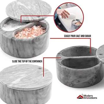 Unlike many other salt cellars that are merely functional, our Elegant Marble Salt Cellar sets itself apart with its sophisticated design and dual compartments. Many competitors offer single-compartment storage solutions, which limit versatility. Our salt cellar not only combines practical storage with style, but it also utilizes durable marble that outlasts wooden or plastic counterparts. The attractive swivel lid grants ease of access, making it superior in both functionality and aesthetic appeal.