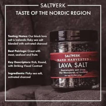 Introducing the Saltverk Lava Sea Salt, a premium gourmet seasoning that elevates your culinary creations. Hand-harvested from the pristine waters of Iceland, this unique black lava salt blends traditional craftsmanship with a modern sustainable approach. Coming in a beautifully designed 3.17-ounce jar, it boasts a striking dark hue thanks to its natural activated charcoal content, giving it an exquisite appearance and flavor profile. With a smooth, subtle, and non-bitter taste, it enhances...