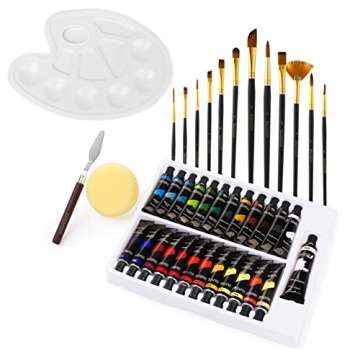SALVADOR 40 Piece Acrylic Paint Kit, 24 Tubes of 0.4 oz Premium Paints, Mixing Knife, Paint Palette with Sponge