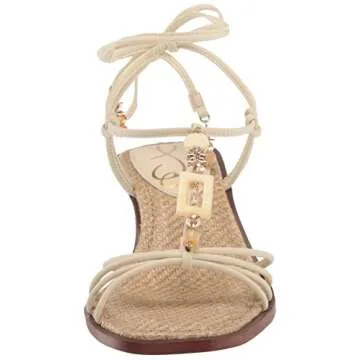 Step into elegance and comfort with the Sam Edelman Dacie Kittle Heel Lace Up Sandal, the perfect choice for your chic summer outings and romantic date nights. Made from high-quality faux leather, these stylish sandals feature a unique ankle-wrap silhouette secured with a graceful tie closure. The delicate crystal and charm accents add a touch of sparkle, transforming an everyday sandal into something truly special. With its modern ivory hue and dainty kitten...