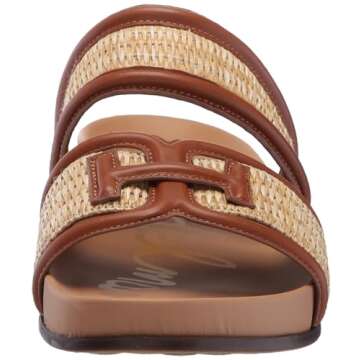 Show moreStep into the perfect blend of style and comfort with the Sam Edelman Women's Rowan Slide Sandal in Dark Natural/Rich Cognac. Designed for the modern woman who values fashion and practicality, these slides offer a refined take on the classic sporty sandal. Featuring a chic double-banded basketweave design, the Rowan sandals are perfect for both city strolls and beach adventures. The elevated 1.375-inch heel provides the perfect lift, while the slip-on closure allows for easy wear. With a thoughtful piped trim and sophisticated bit detail, these sandals are truly a statement piece for any wardrobe.