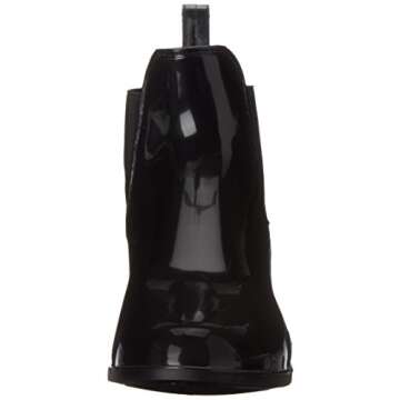 Show moreStep into style and versatility with the Sam Edelman Women's Tinsley Rain Boot. Crafted for the modern woman, these boots combine aesthetic appeal with practical functionality, making them an essential addition to your footwear collection. Designed with a sleek black polished finish, the Tinsley Rain Boot stands out not just in the rain but in any casual or professional setting. The pull-on loop at the back ensures effortless wear, while the deep elastic goring on the sides allows for an adaptable fit that hugs your ankles perfectly. Whether you're navigating city streets on a rainy day or dressing up for a casual outing, these boots offer a seamless blend of form and function.