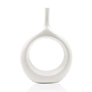 Show moreIntroducing the Samawi Home Decors 10" White Vase, a stunning addition to any modern home! Crafted from high-quality ceramic, this elegant donut vase features a soothing white finish, making it a versatile piece suitable for various decor styles. Perfectly sized at 9.4" high and 6.8" wide, this vase is ideal for displaying your favorite blooms or decorative elements while enhancing the overall aesthetic of your living space. Its unique design adds a contemporary touch, ensuring it stands out as both a functional flower vase and a beautiful decor accent.